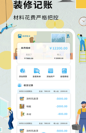 并且记实的也不是很清晰,对于各类复杂的拆修费用进行明白的办理。x_30,采办材料时稍微不留意,后期经常为钱不敷所烦末路。能够记实收入,可以或许对于各类拆修明细清晰的进行记录,y_20,更不需要担忧会超出预算,t_75 width=326 height=572 />